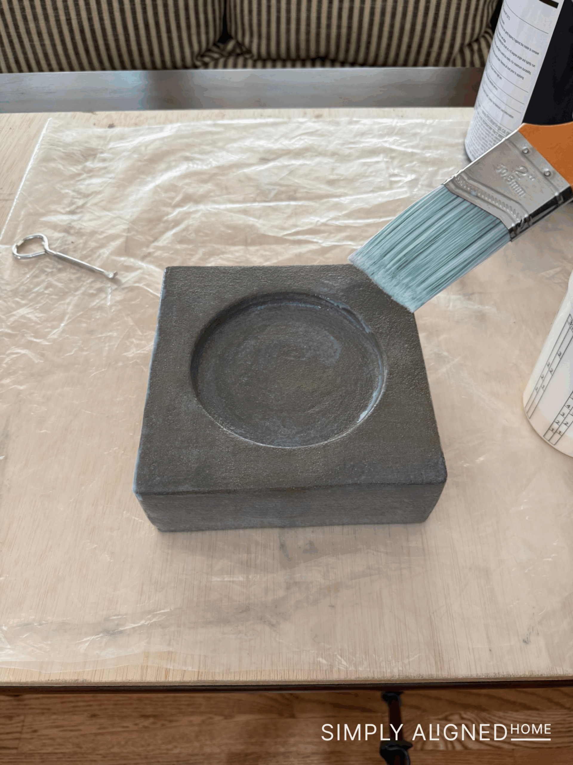 Before the second coat fully dried, I used a damp sponge to soften the corners and smooth the surface. This gives the finished piece a more organic, stone-like look.