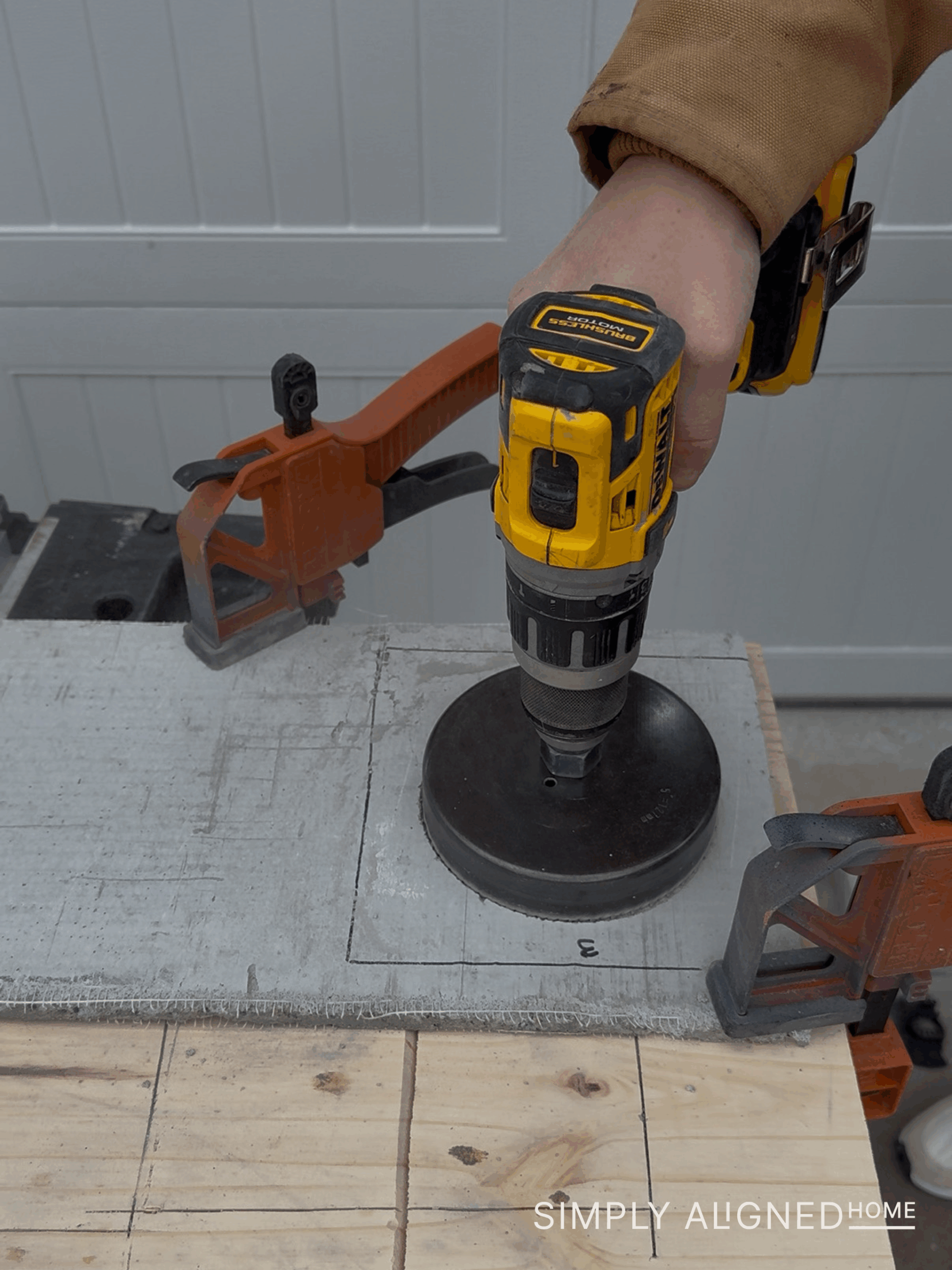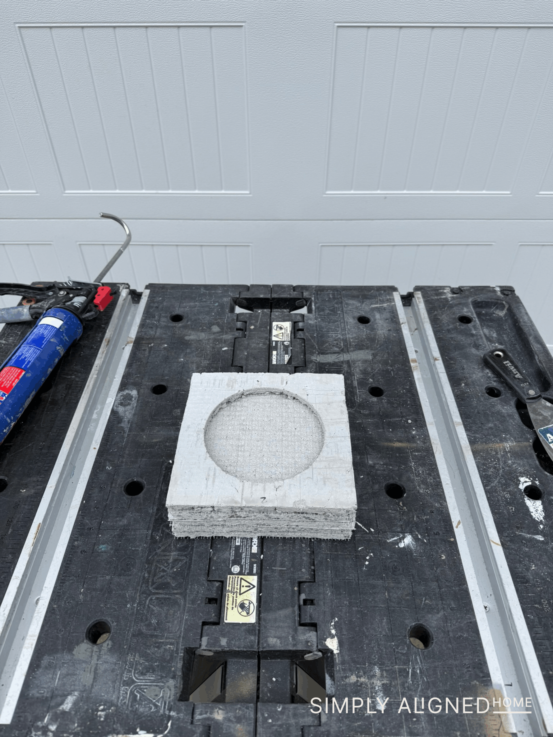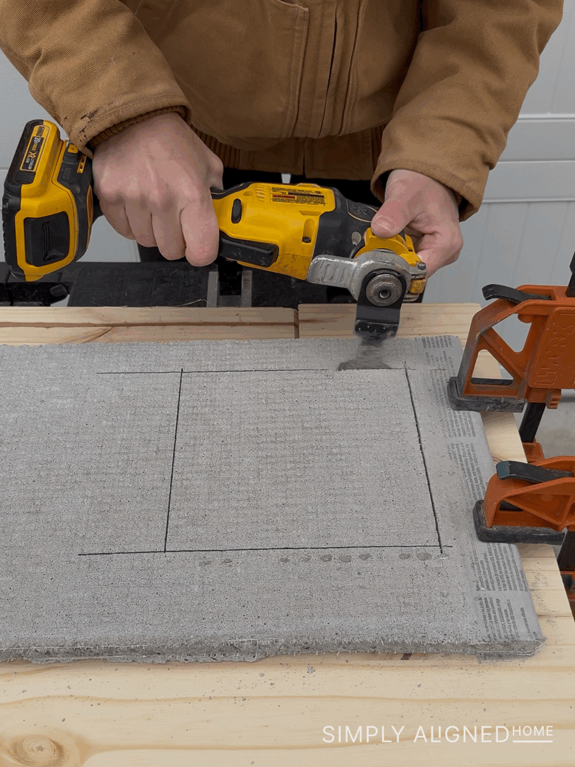 I started by cutting the cement board scraps into small square pieces. To get cleaner cut edges, I used my oscillating multi-tool, but any cement board-safe cutting method works.