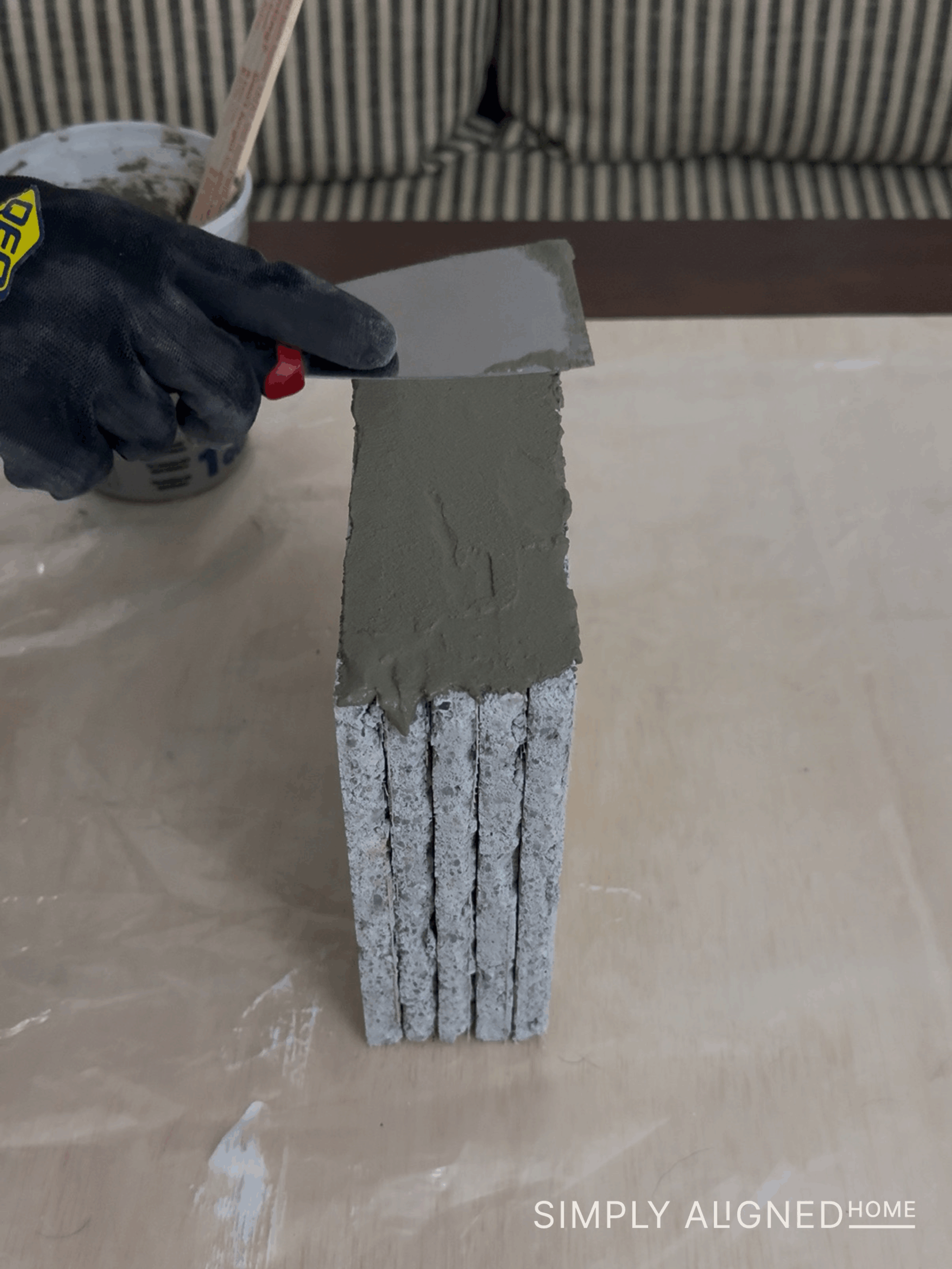 Once the mortar was completely dry, I lightly sanded the entire piece to remove any rough texture.